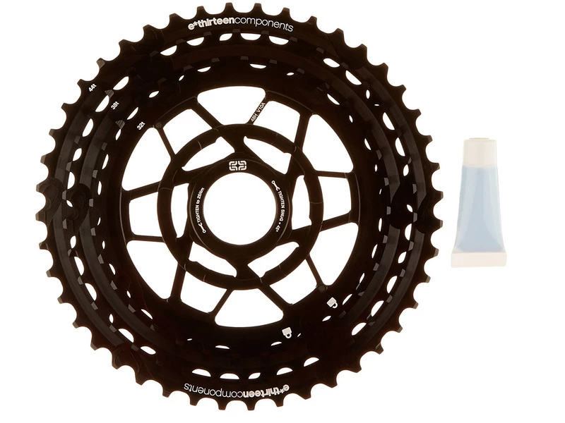 Bloc de pignons pour cassette E13 TRS+ pour changer uniquement les parties usées de votre cassette TRS Plus. Le premier bloc contient les pignons de 9-10-12-14 dents, le deuxième bloc contient les pignons de 17-20-24-28 dents et le dernier bloc contient les pignons de 32-38-44 dents.