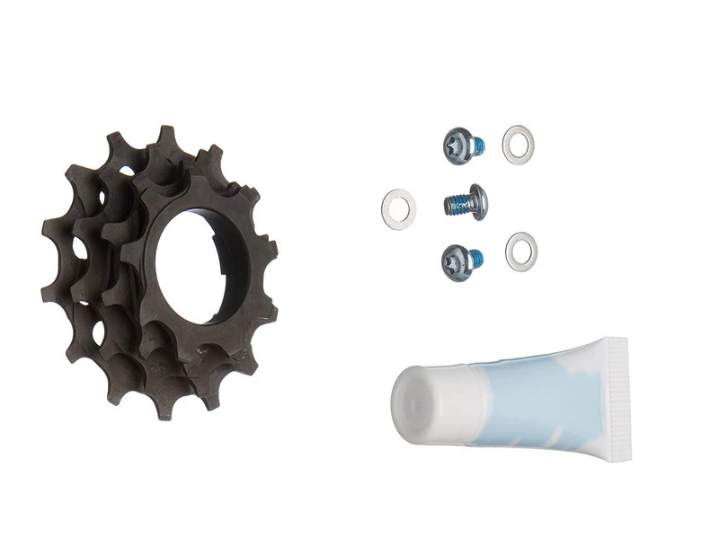 - Premier bloc : pignons en acier de 9-10-12-14 dents (pour cassettes 10 et 11 vitesses)